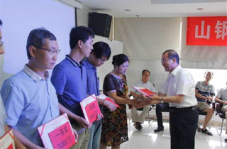 公司董事長魏新民、總經(jīng)理衣忠德給一等獎?wù)撐淖髡哳C發(fā)榮譽(yù)證書及獎勵。