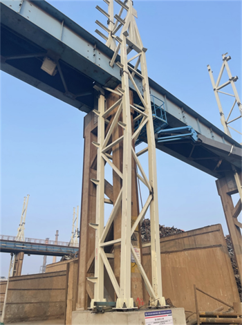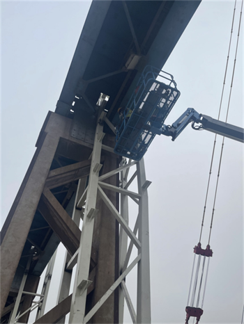 項(xiàng)目開工后,項(xiàng)目部將施工圖與現(xiàn)場實(shí)際巧妙結(jié)合,立足保證原棧橋系統(tǒng)完整、獨(dú)立運(yùn)行為宗旨,攻克多項(xiàng)改造重點(diǎn)、難點(diǎn)。如利舊原有承臺(tái)短柱、鋼柱貫穿制動(dòng)板現(xiàn)場加固、斜桿穿吊車梁腹板并規(guī)避電纜橋架等障礙物、大跨度屋面桁架梁跨外吊裝等。提前策劃好每個(gè)節(jié)點(diǎn),做到現(xiàn)場施工完全落實(shí)設(shè)計(jì)意圖,實(shí)現(xiàn)了結(jié)構(gòu)安全、質(zhì)量可靠、進(jìn)度可控、經(jīng)濟(jì)合理。