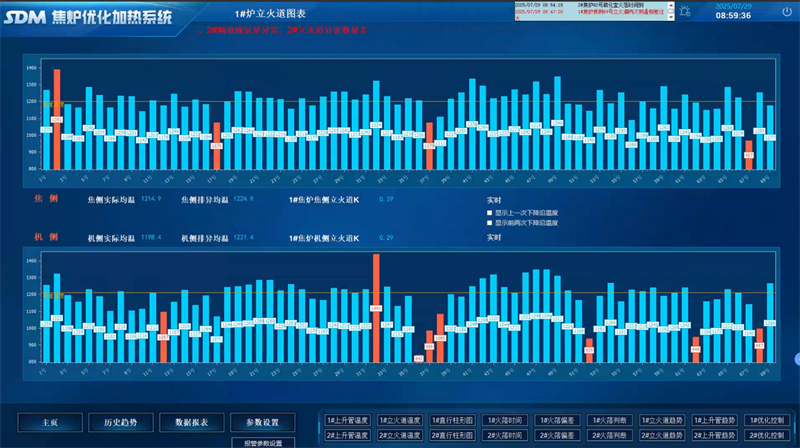 在煉焦環(huán)節(jié),焦?fàn)t自動(dòng)測(cè)溫和優(yōu)化加熱系統(tǒng)成為節(jié)能降耗的“利器”。276個(gè)立火道紅外測(cè)溫點(diǎn)實(shí)時(shí)采集溫度數(shù)據(jù),結(jié)合荒煤氣溫度與煙氣殘氧分析,系統(tǒng)自動(dòng)調(diào)節(jié)煤氣流量與分煙道吸力,預(yù)計(jì)使加熱煤氣消耗降低2.8%,全爐溫度均勻系數(shù)提升至0.92。通過(guò)火落時(shí)間預(yù)測(cè)與標(biāo)準(zhǔn)溫度動(dòng)態(tài)優(yōu)化,顯著減小結(jié)焦時(shí)間偏差,大幅減少了能源浪費(fèi)。