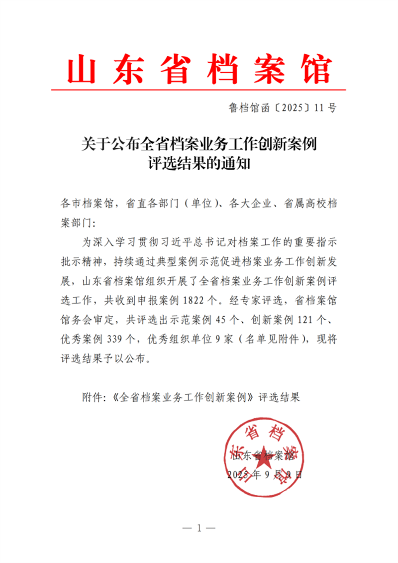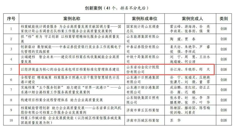 山冶設(shè)計入選山東省檔案館 “檔案服務(wù)企業(yè)高質(zhì)量發(fā)展案例”創(chuàng)新案例