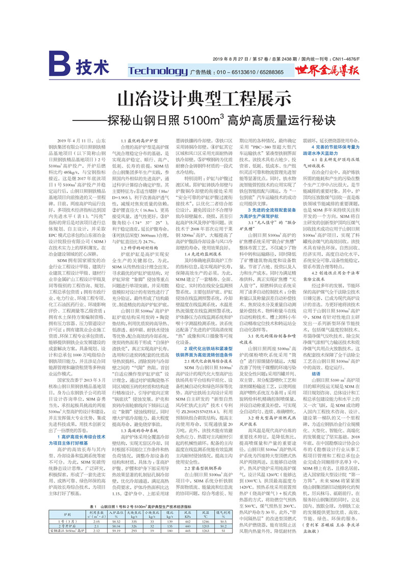 山冶設(shè)計(jì)典型工程展示——探秘山鋼日照 5100m3 高爐高質(zhì)量運(yùn)行秘訣